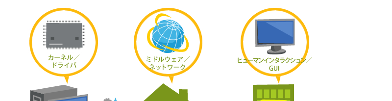 私たちは長年に渡り、多種多様な業務を通じてエンドユーザに直接利用されるソフトウェアから、ハードウェアを制御するソフトウェア、またネットワークを利用して提供されるサービスの基盤となるソフトウェアまで、広範囲にわたる経験を有しております。